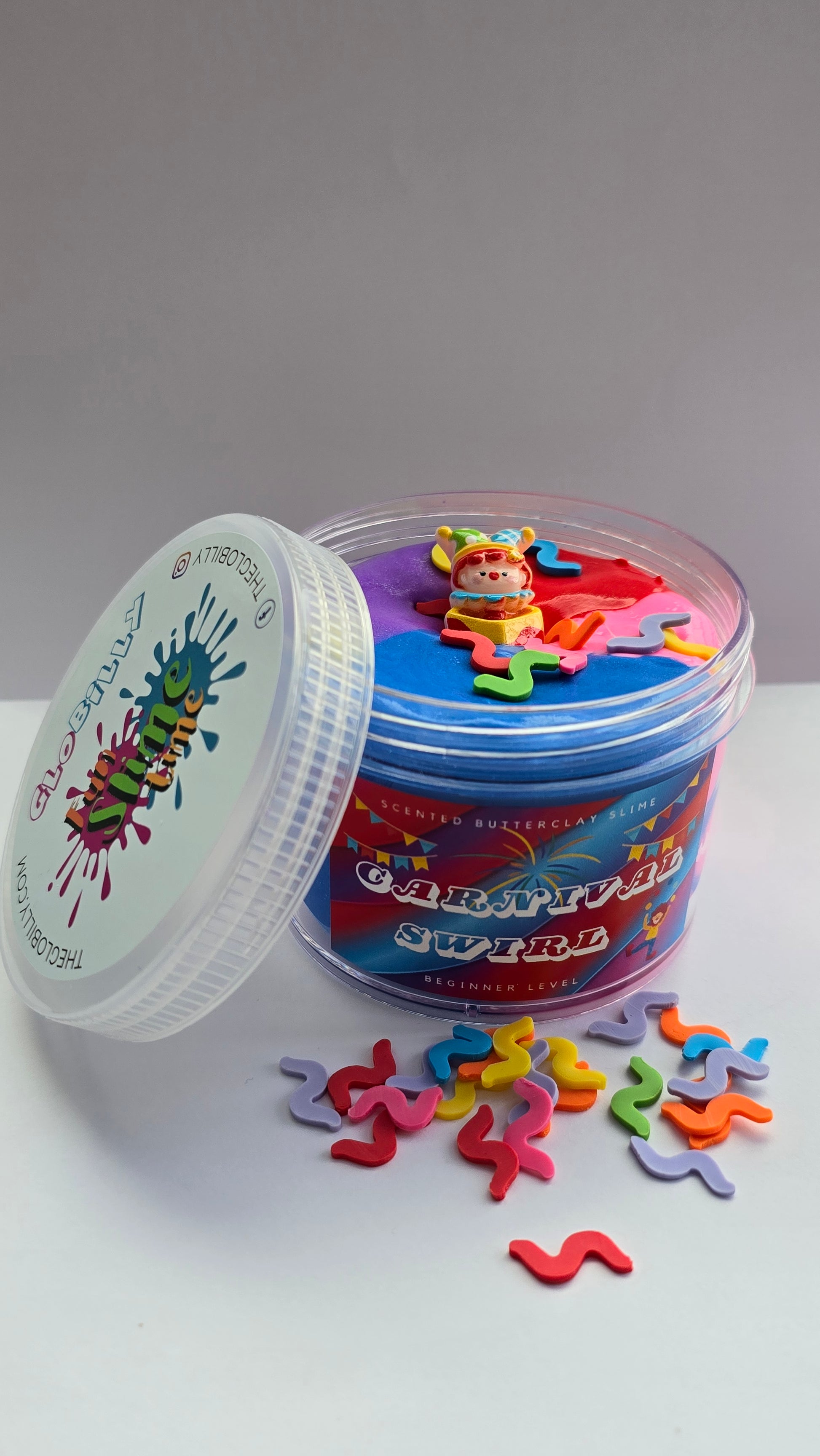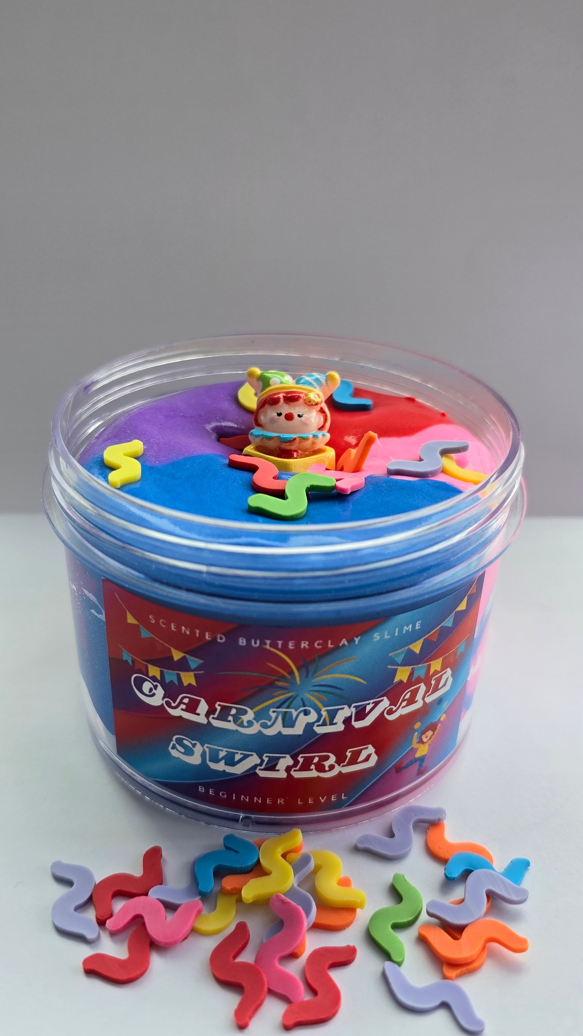 Perfect for playtime, stress relief, and relaxation, you won't want to miss out on this bright carnival themed butter slime!