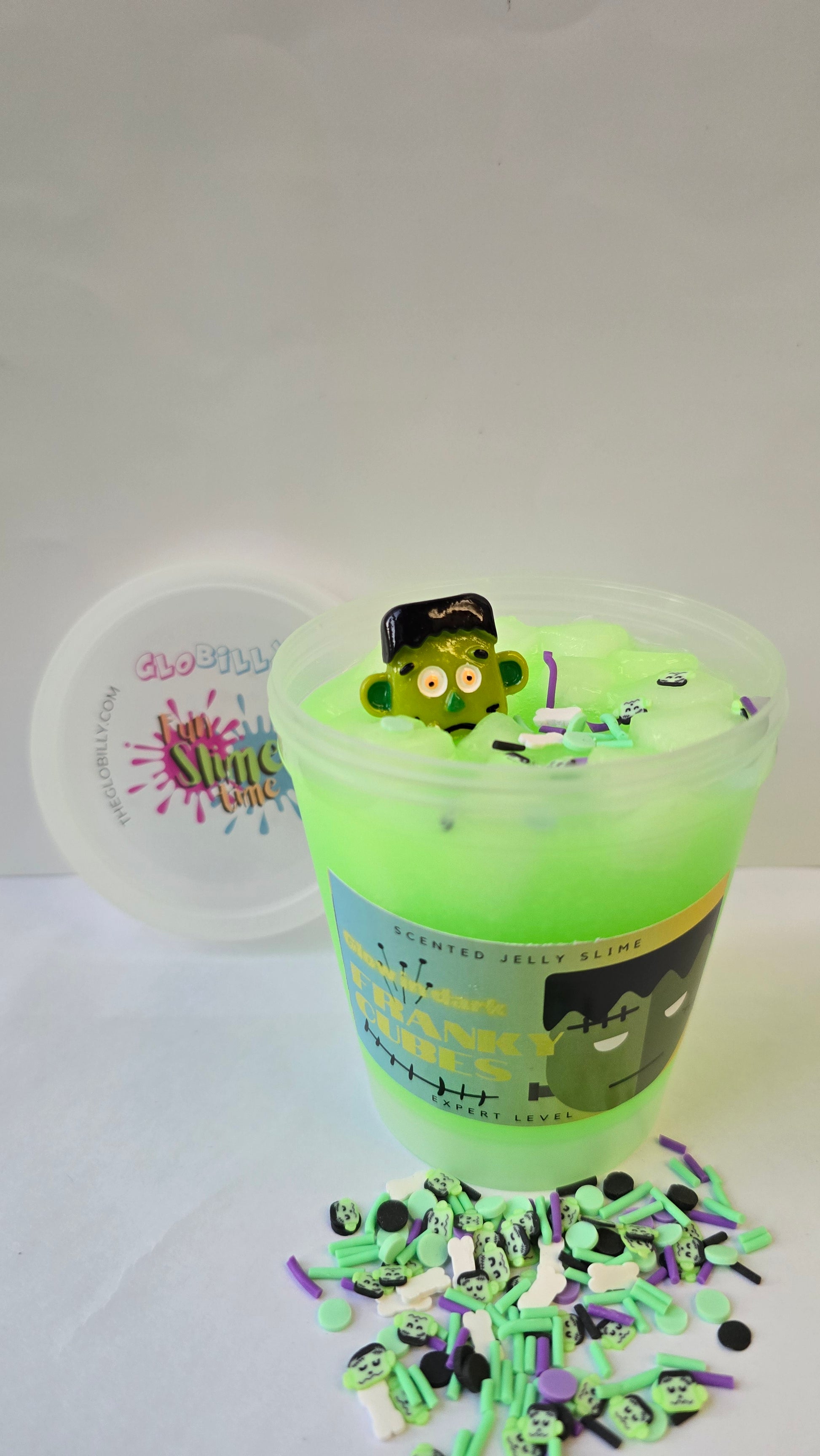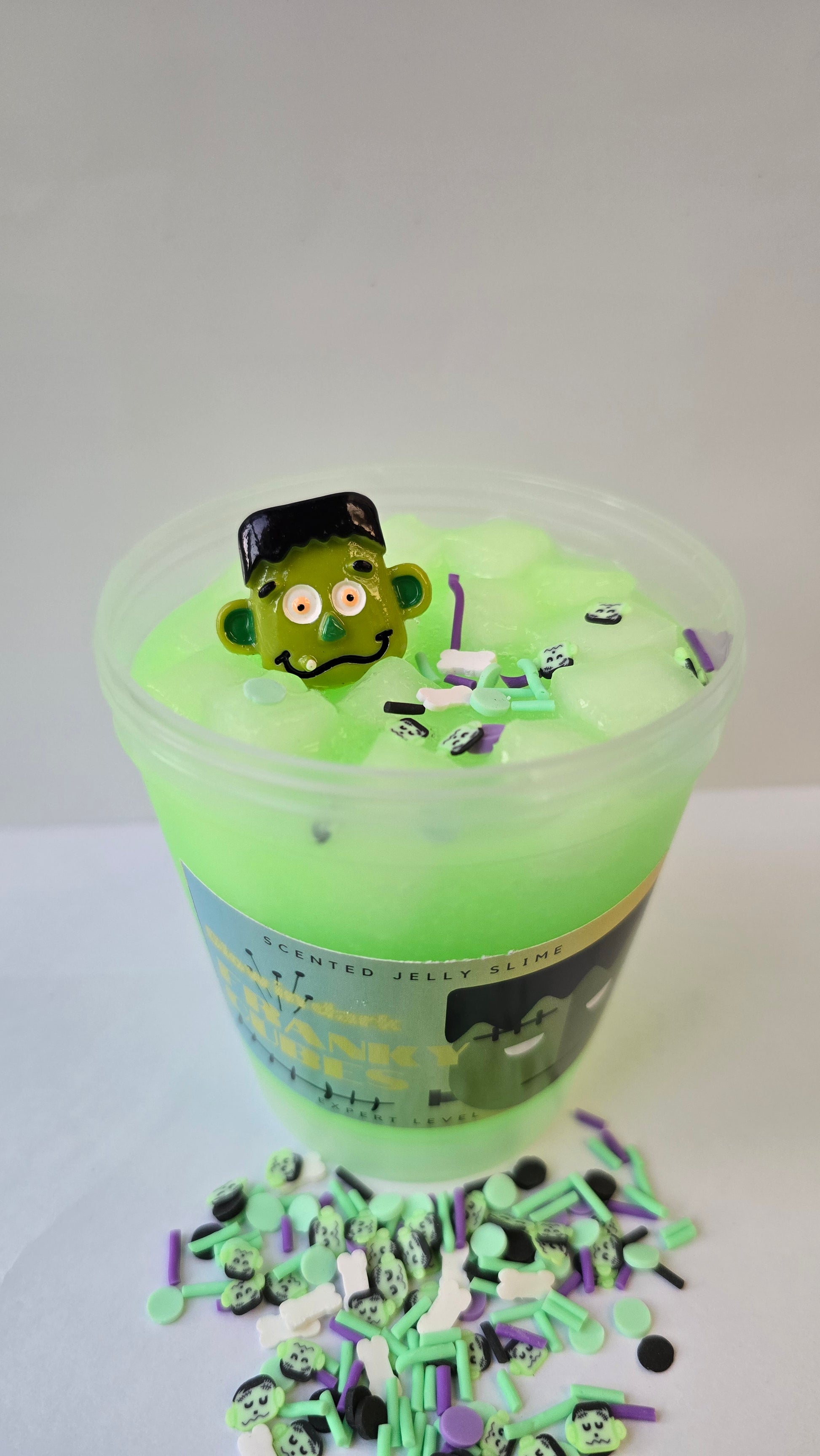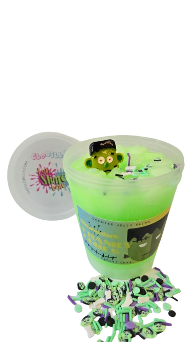 Unleash the monster within with Franky Cubes! This limited edition Halloween slime is here to give your slime game a spook-tacular boost. Get ready to be spooked with its vibrant green clear jelly slime and jelly cubes, topped with Frankenstein-themed fimos. Just in time for the season of fright! Scented sour apples