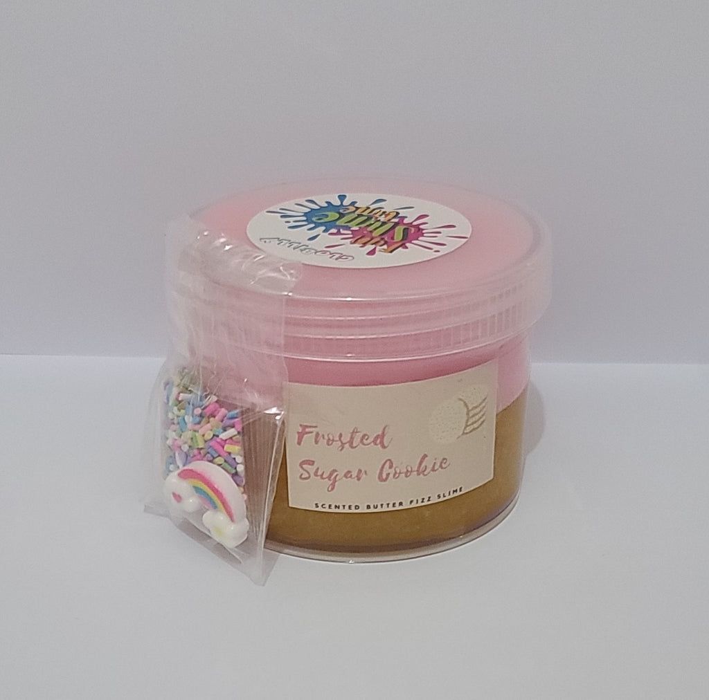 Yellow snowfizz slime and Pink Butter slime with cute charms and addins premix