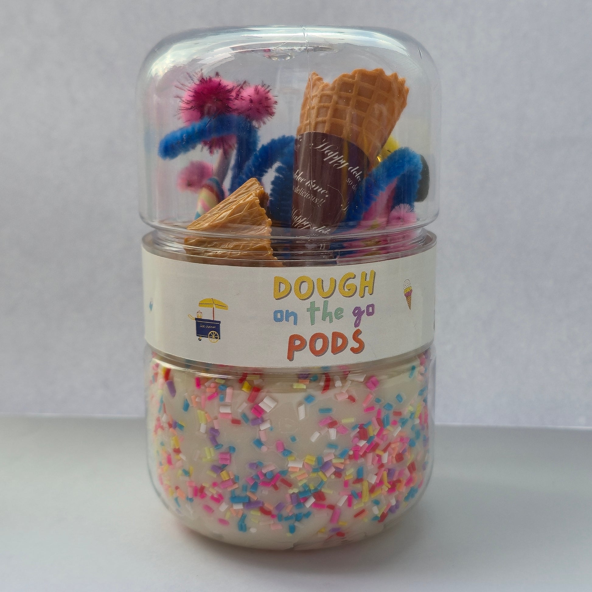 This Ice Cream Dough Pod comes with our amazing all-natural sensory dough and a separate screw-on jar filled with everything you need to make the cutest ice cream parlour scene!