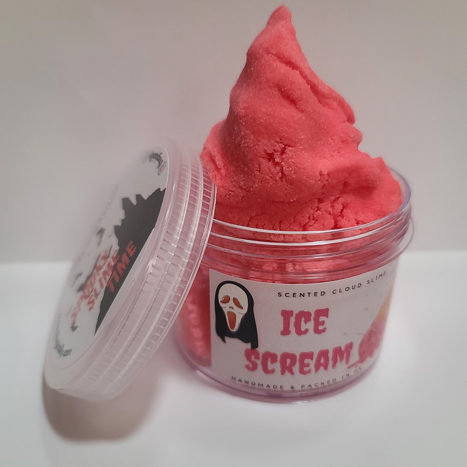 "This is a soft, fluffy and drizzly cloud slime. It comes with spooky sprinkles and an adorable ghost face charm!"