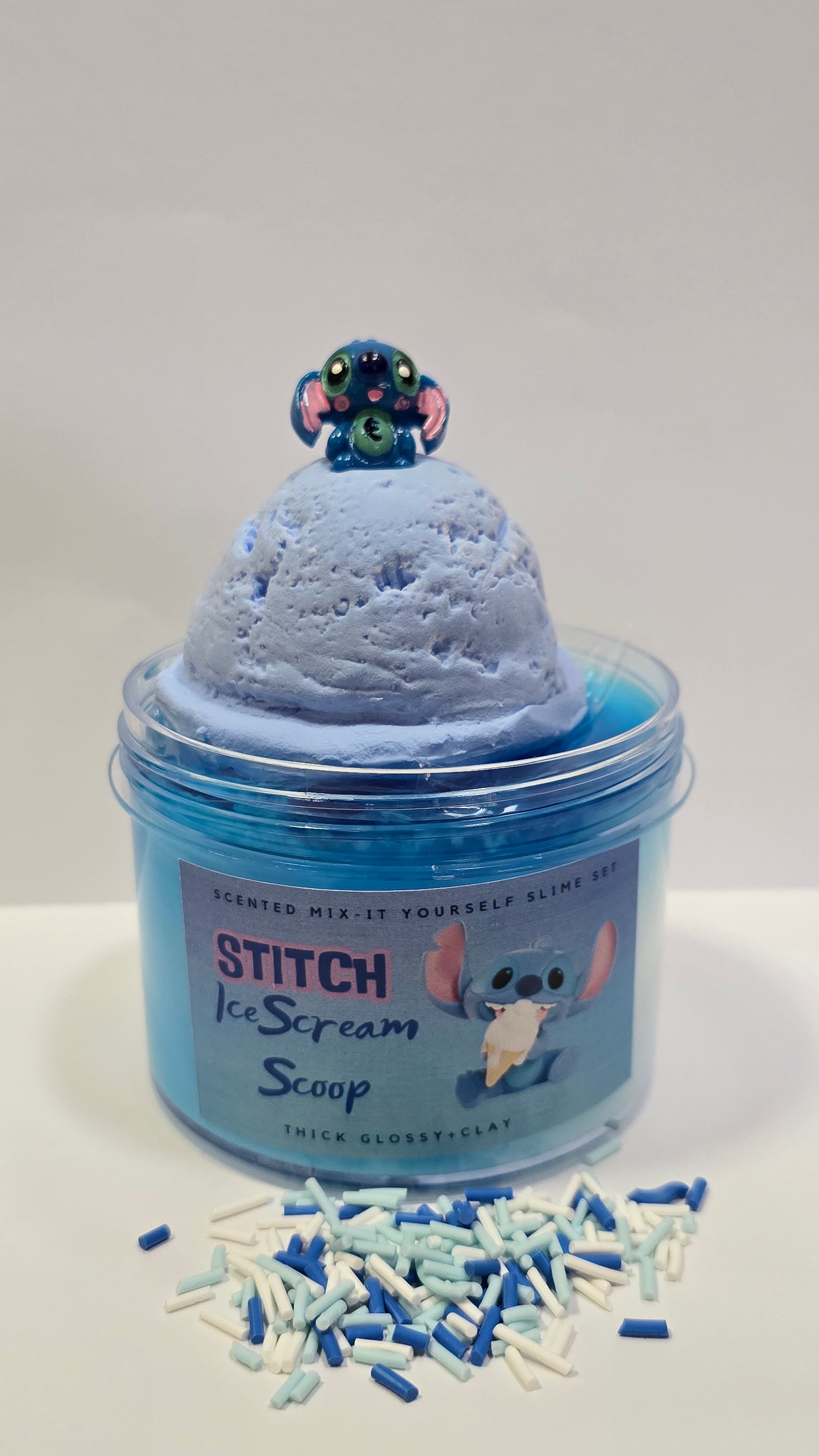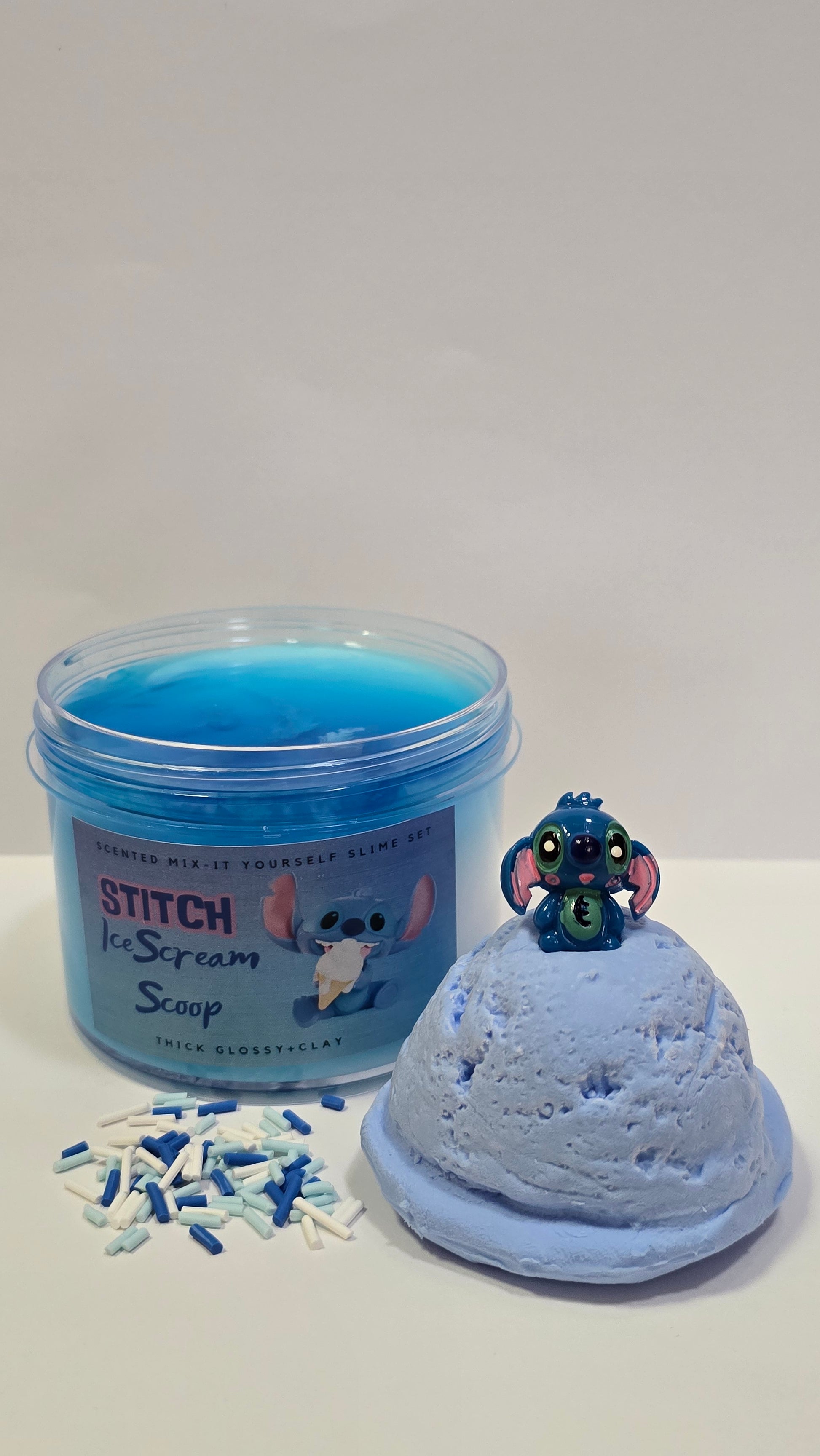 This DIY clay kit comes with everything you need to create & decorate a Stitch inspired ice cream slime ! Thick & Glossy blue/white base slime with ice Cream scoop shaped clay piece and Sprinkle bag + cute Stitch charm!